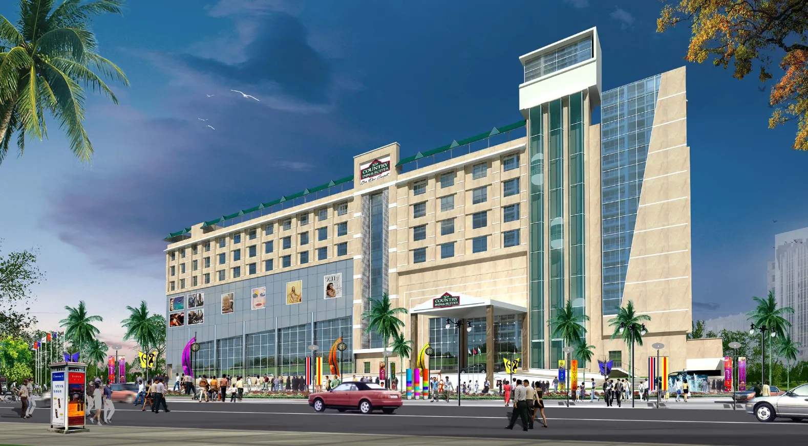 Within the complex, Shopprix has two hotels: Country Inn & Suites which provides services of a 4-star hotel of 85 rooms, with its very own restaurant and a banquet hall and the other being 92 room Hyphen Hotel with its own amenities. Sufficient parking spaces are provided for catering the needs of the customers predicted to come to the Mall.